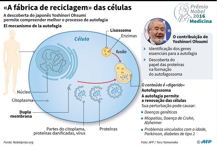 Nobel de Medicina e Fisiologia de 2016 foi para o cientista Yoshinori Ohsumi, por suas descobertas importantes sobre os mecanismos de autofagia, processo pelo qual as células “digerem” partes de si mesmas. Os achados de Ohsumi abriram as portas para a compreensão do papel da autofagia em doenças neurodegenerativas, câncer, diabetes tipo 2, entre outras.