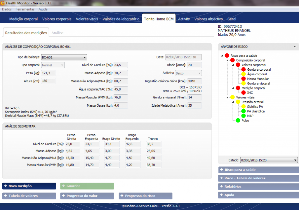 – Impedância de cada segmento corporal.