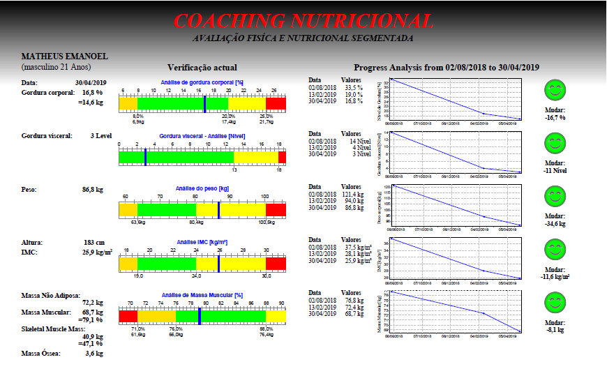 São detalhes importantes que fazem muita diferença, mas nem sempre estão evidentes sem uma investigação adequada. Portanto, se você quer ter uma visão realista de como está a sua saúde através da sua composição corporal e direcionar melhor suas ações em relação a ela e ao seu objetivo estético, deve fazer o exame de bioimpedância.