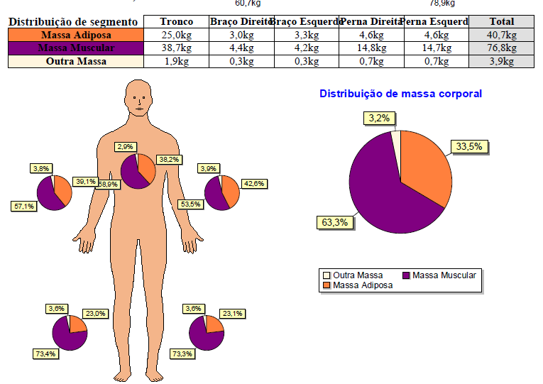 -Segmentação das massas, músculo, gordura e água em todos os membros